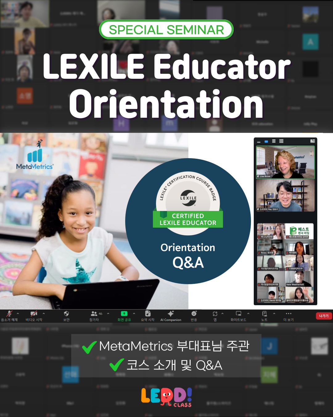 LEXILE 본사 MetaMetrics 와 함께 국내 유일 공식 인증 전문가 과정을 운영하는 곳! 바로 LEDDI 입니다 🥳